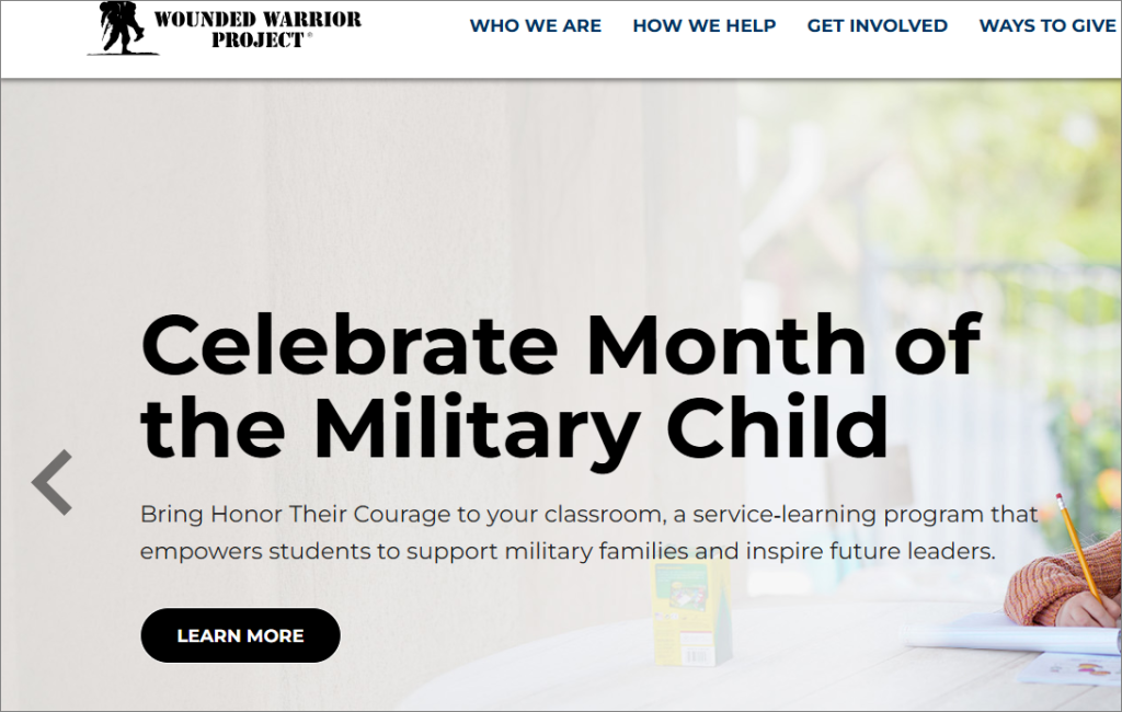 The Wounded Warrior Project website (woundedwarriorproject.org) represents a nonprofit organization that supports injured veterans and their families through programs focused on mental health, career support, and rehabilitation. It aims to help veterans recover, transition to civilian life, and improve their overall well-being after military service.