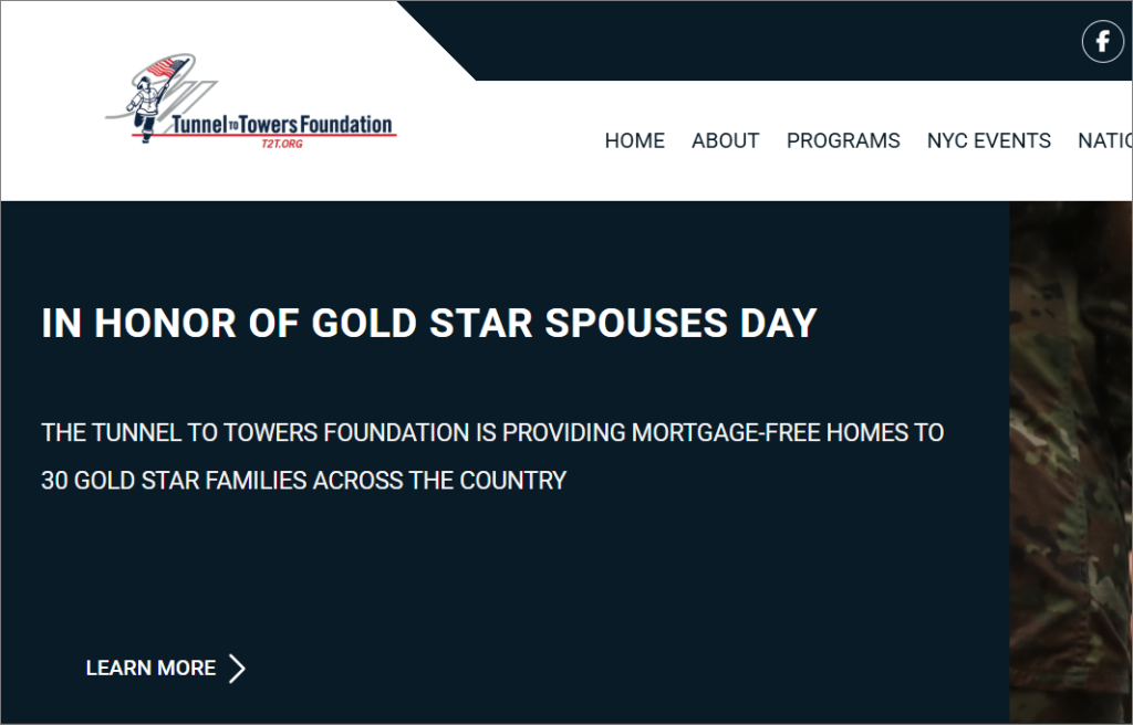 The Tunnel to Towers Foundation (t2t.org) is a nonprofit organization that honors fallen first responders and military members, inspired by firefighter Stephen Siller’s sacrifice on September 11, 2001. It raises funds to support programs like housing assistance for injured veterans, Gold Star families, and first responders.